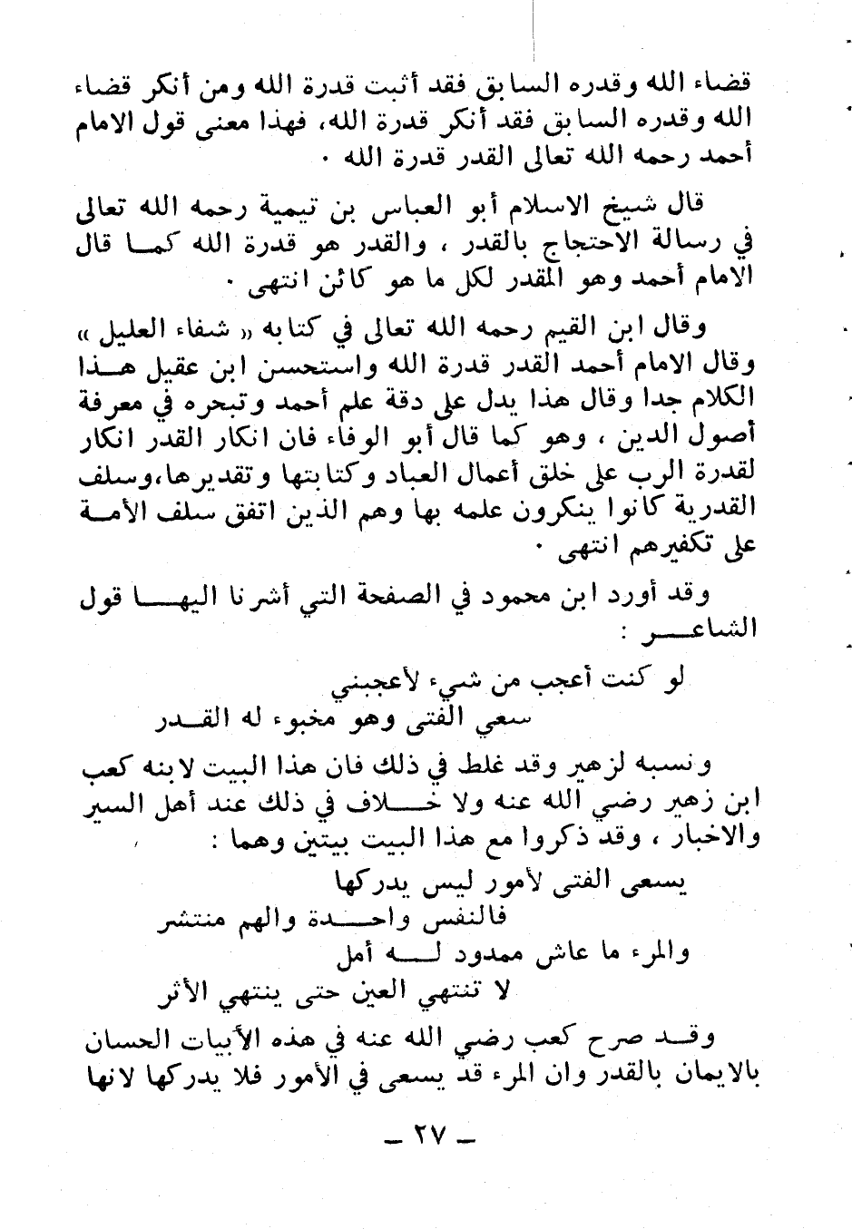 وقد صرح كعب رضي الله عنه في هذه الأبيات الحسان بالإيمان بالقدر وأن المرء قد يسعى في الأمور فلا يدركها لأنها
