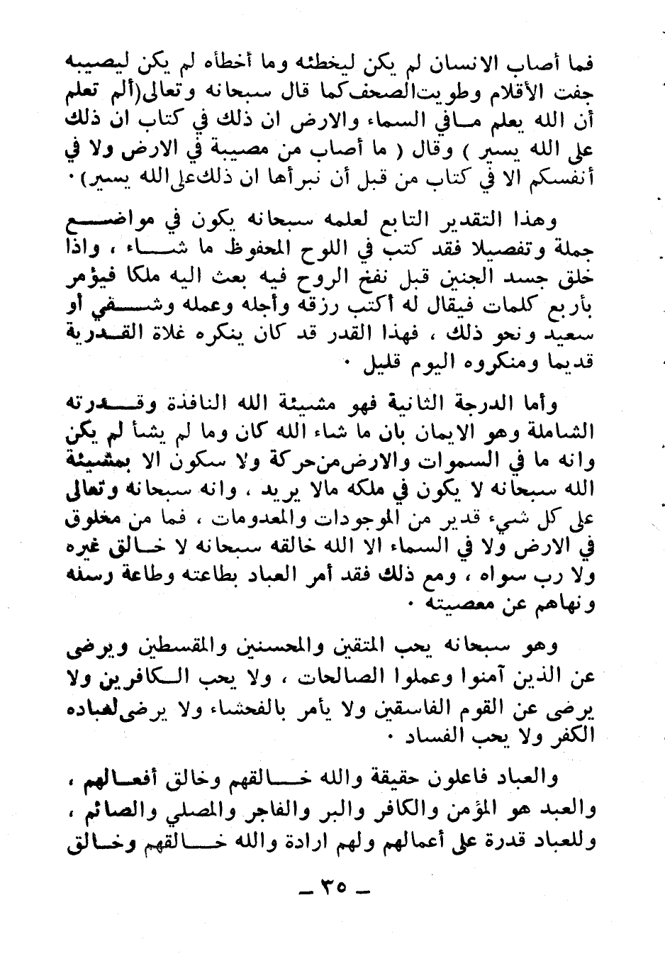 والعباد فاعلون حقيقة والله خالقهم وخالق أفعالهم، والعبد هو المؤمن والكافر والبر والفاجر والمصلي والصائم، وللعباد قدرة على أعمالهم ولهم إرادة والله خالقهم وخالق