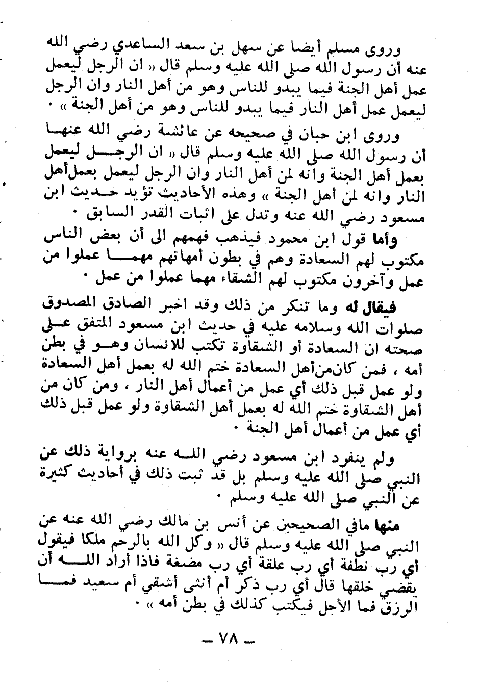 وروى ابن حبان في صحيحه عن عائشة رضي الله عنها أن رسول الله صلى الله عليه وسلم قال: «إن الرجل ليعمل بعمل أهل الجنة وإنه لمن أهل النار وإن الرجل ليعمل بعمل أهل النار وإنه لمن أهل الجنة» وهذه الأحاديث تؤيد حديث ابن مسعود رضي الله عنه وتدل على إثبات القدر السابق.