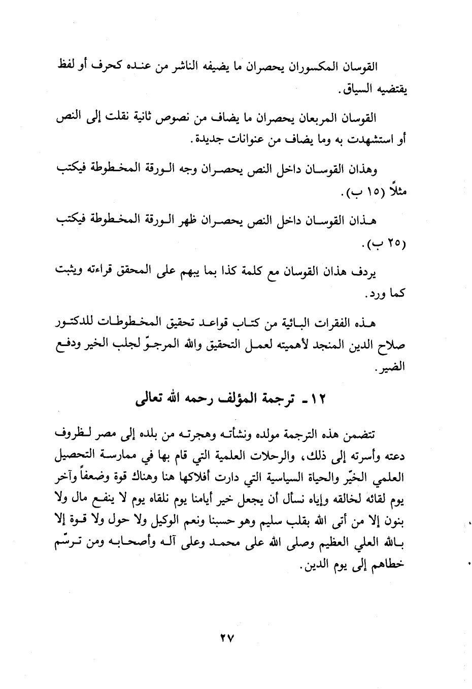 هذه الفقرات البائية من كتاب قواعد تحقيق المخطوطات للدكتور صلاح الدين المنجد لأهميته لعمل التحقيق والله المرجو لجلب الخير ودفع الضير.