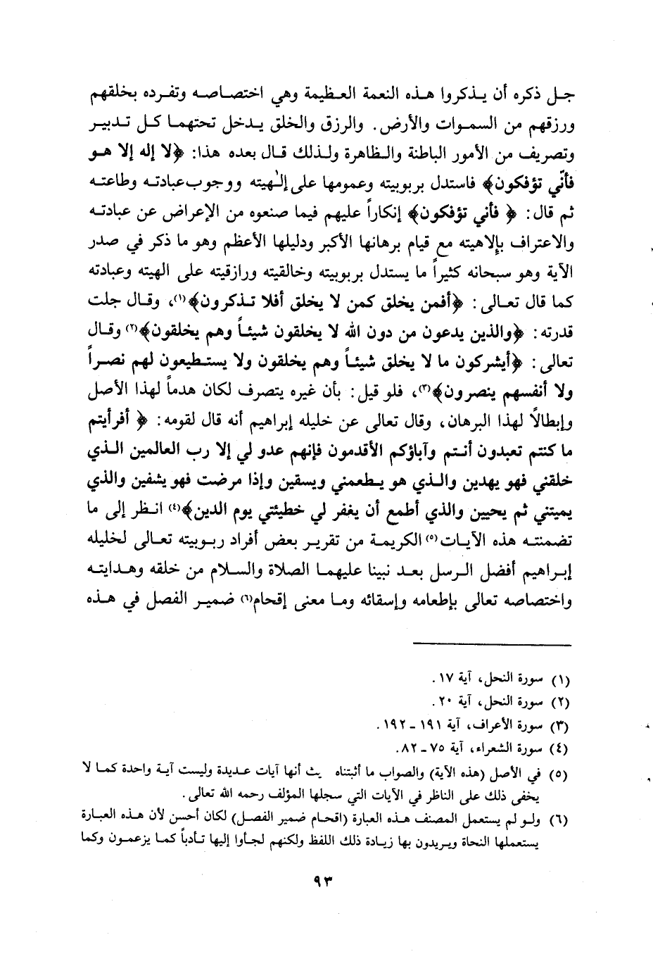(5) في الأصل (هذه الآيات) والصواب ما أثبتناه حيث أنها آيات عديدة وليست آية واحدة كما لا يخفى ذلك على الناظر في الآيات التي سجلها المؤلف رحمه الله تعالى.