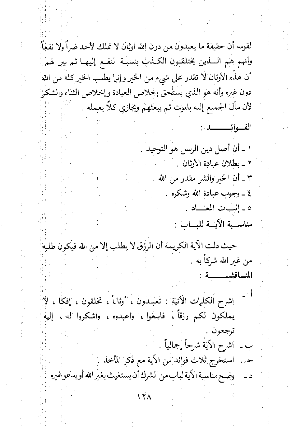 أ. اشرح الكلمات الآتية: تعبدون، أوثانا، تخلقون، إفكا، لا يملكون لكم رزقا، فابتغوا، واعبدوه، واشكروا له، إليه ترجعون.