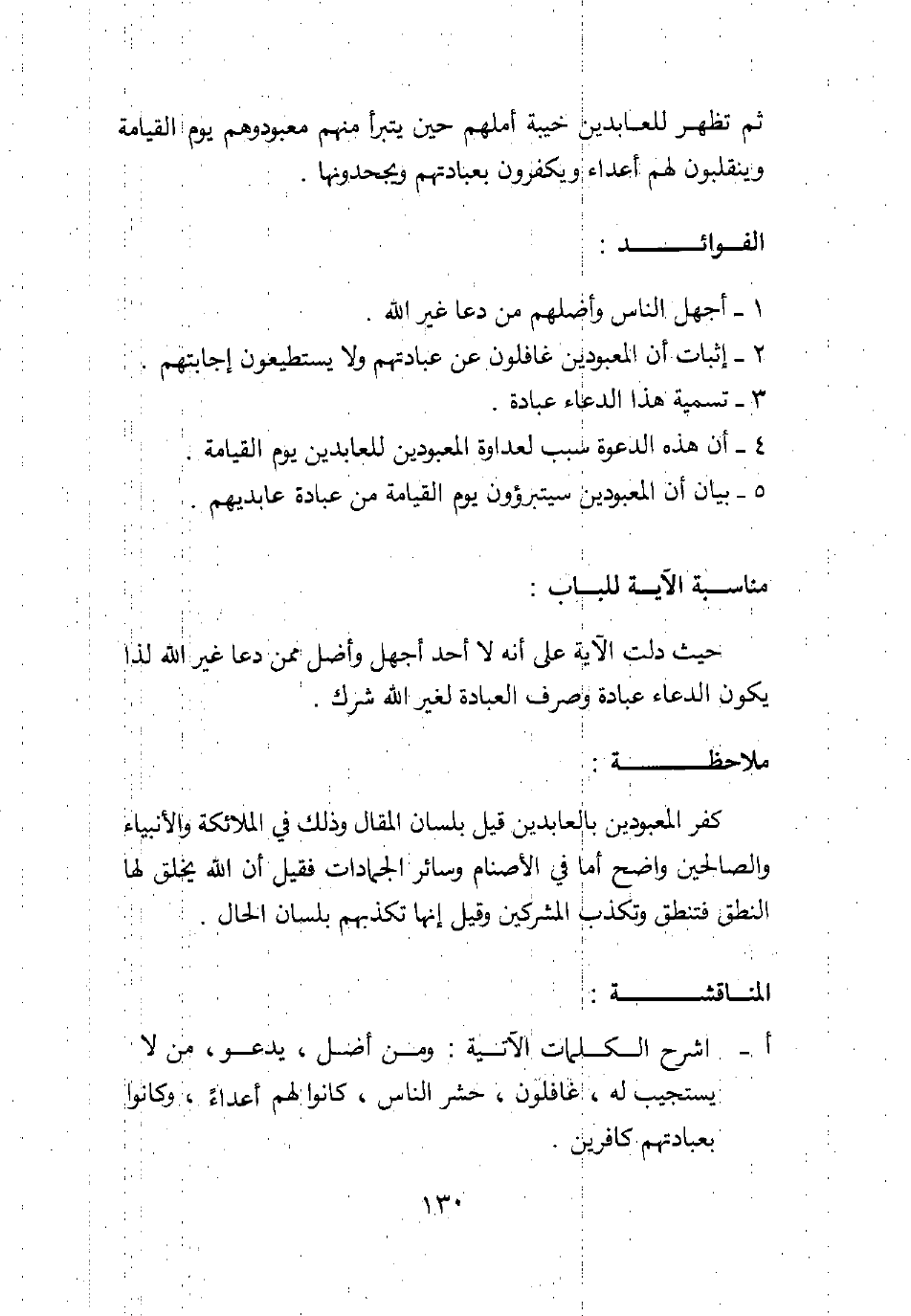 ثم تظهر للعابدين خيبة أملهم حين يتبرأ منهم معبودوهم يوم القيامة، وينقلبون لهم أعداء ويكفرون بعبادتهم ويجحدونها. الفوائد: