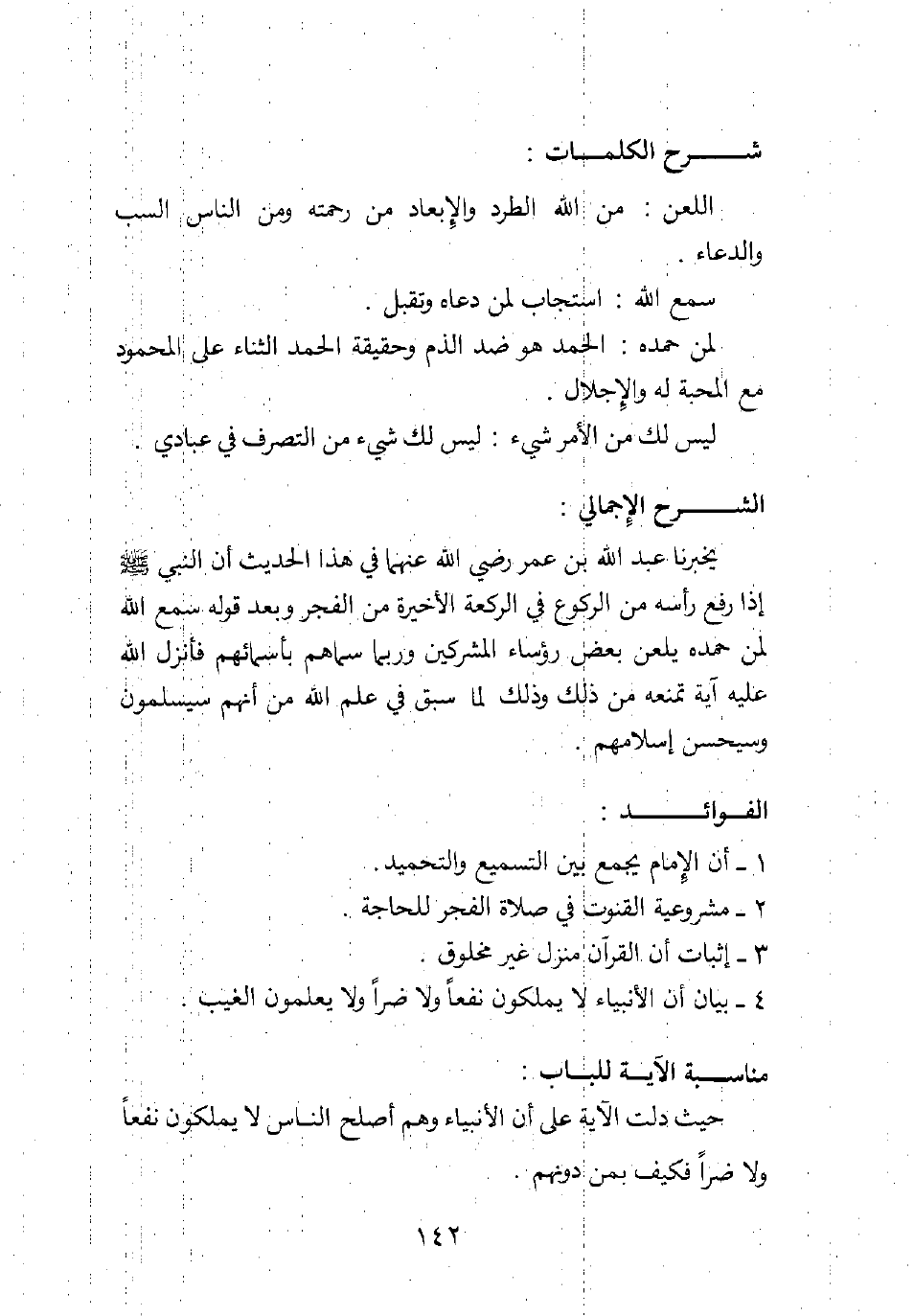 يخبرنا عبد الله بن عمر -رضي الله عنهما- في هذا الحديث أن النبي صلى الله عليه وسلم إذا رفع رأسه من الركوع في الركعة الأخيرة من الفجر، وبعد قوله: سمع الله لمن حمده يلعن بعض رؤساء المشركين، وربما سماهم بأسمائهم، فأنزل الله عليه آية تمنعه من ذلك، وذلك لما سبق في علم الله من أنهم سيسلمون وسيحسن إسلامهم.