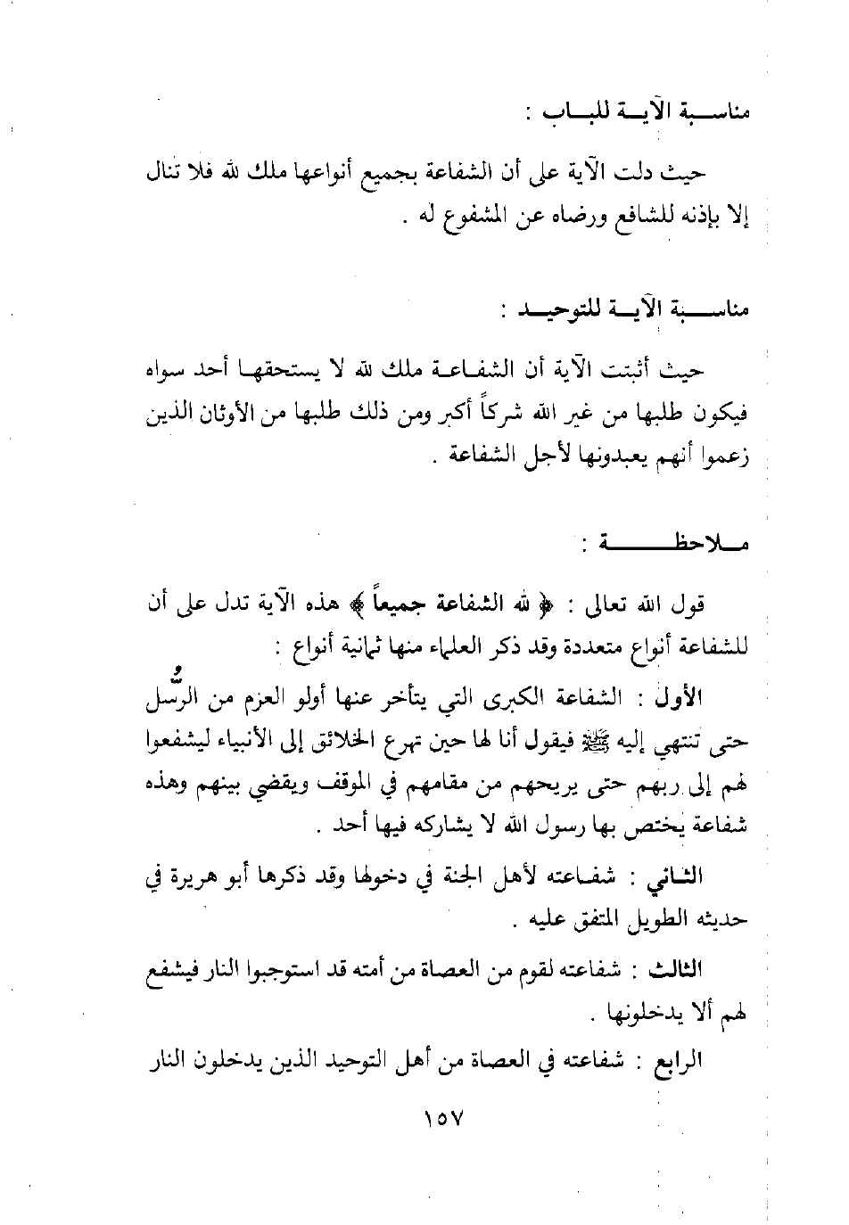 قول الله تعالى: {قُلْ لِلَّهِ الشَّفَاعَةُ جَمِيعاً} 1 هذه الآية تدل على أن للشفاعة أنواعا متعددة. وقد ذكر العلماء منها ثمانية أنواع: