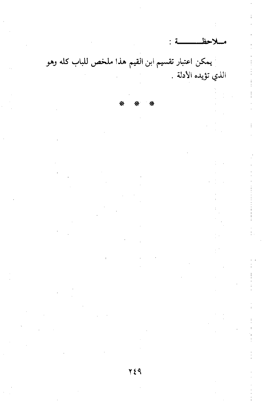 يمكن اعتبار تقسيم ابن القيم هذا ملخصا للباب كله، وهو الذي تؤيده الأدلة.