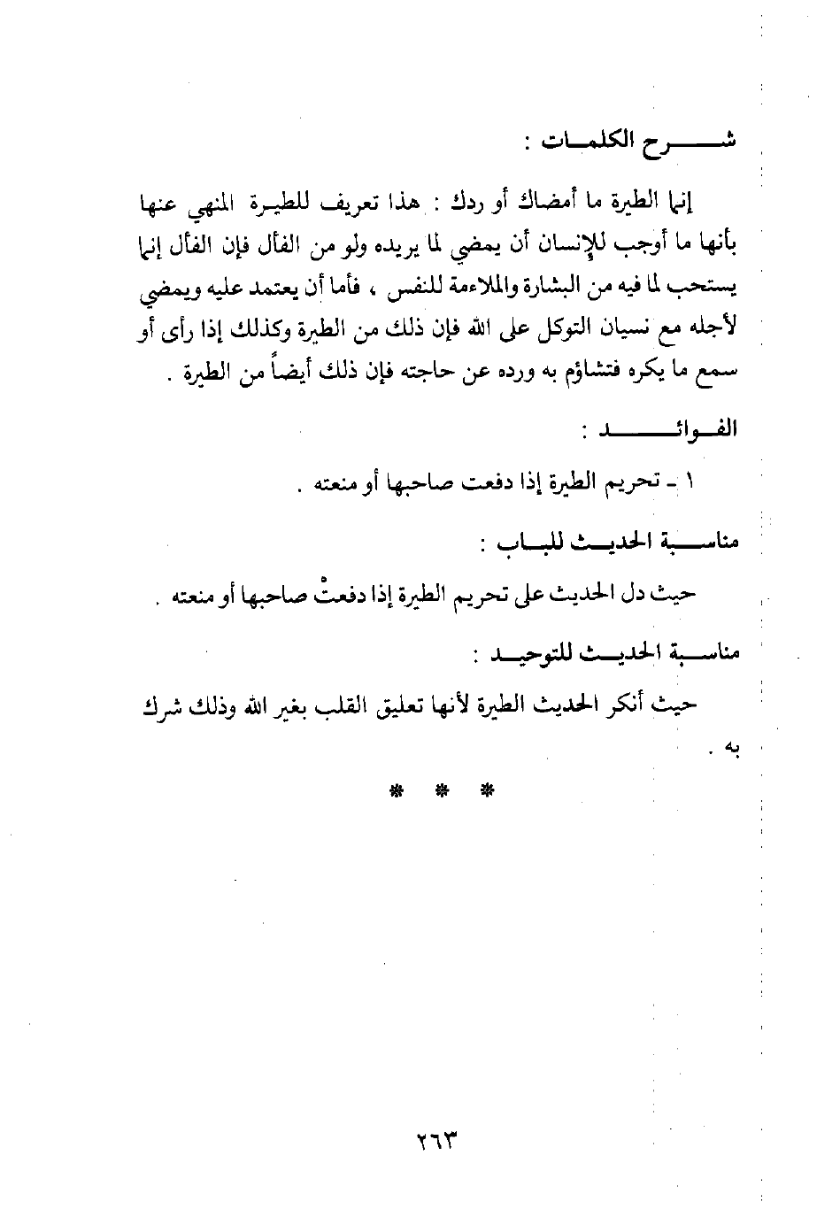 حيث أنكر الحديث الطيرة؛ لأنها تعليق القلب بغير الله وذلك شرك به.
