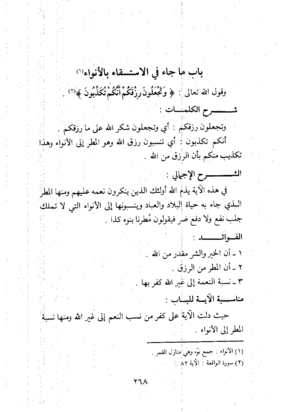 وقول الله تعالى: {وَتَجْعَلُونَ رِزْقَكُمْ أَنَّكُمْ تُكَذِّبُونَ} 2.
