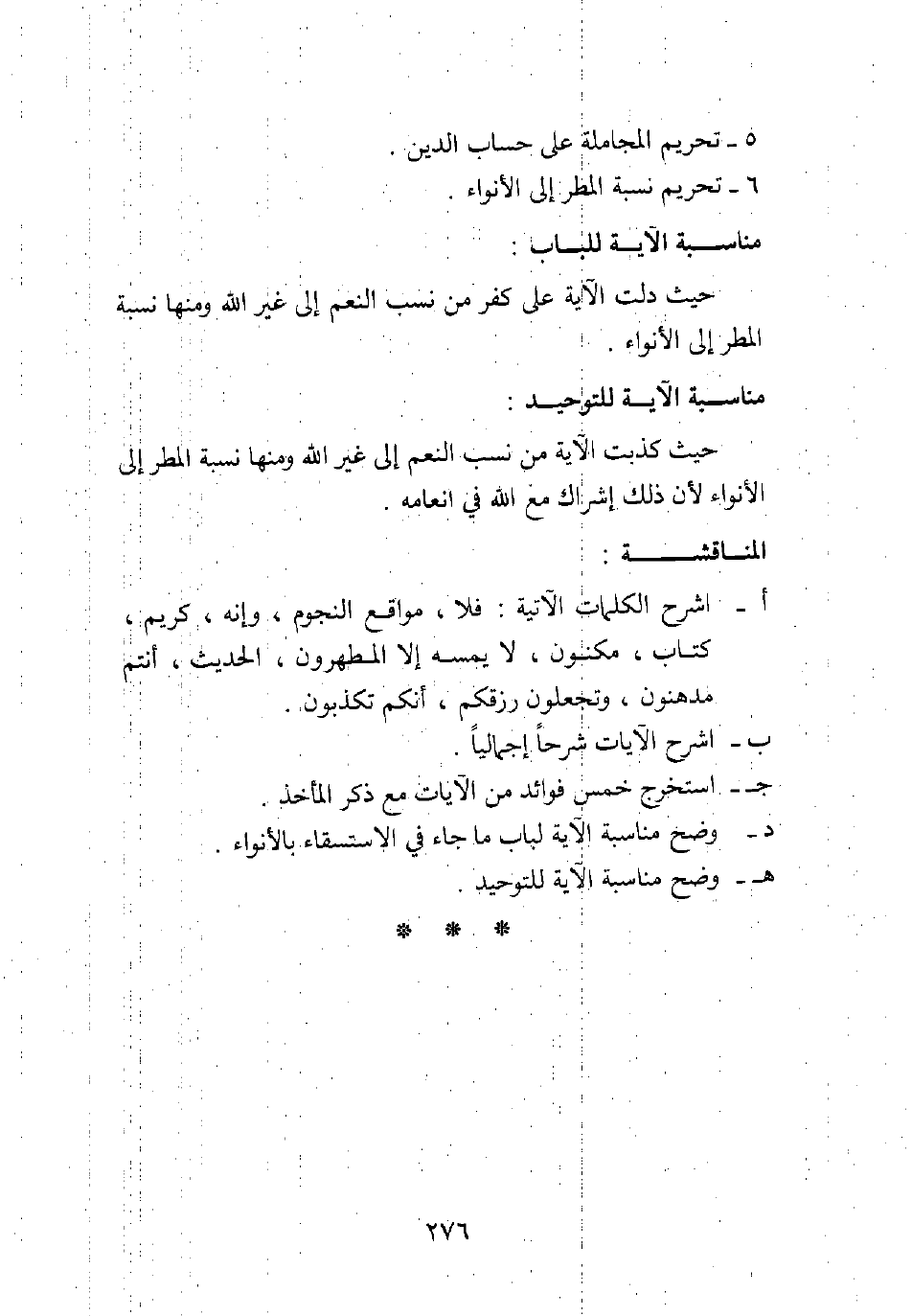 د. وصح مناسبة الآية لباب ما جاء في الاستسقاء بالأنواء.