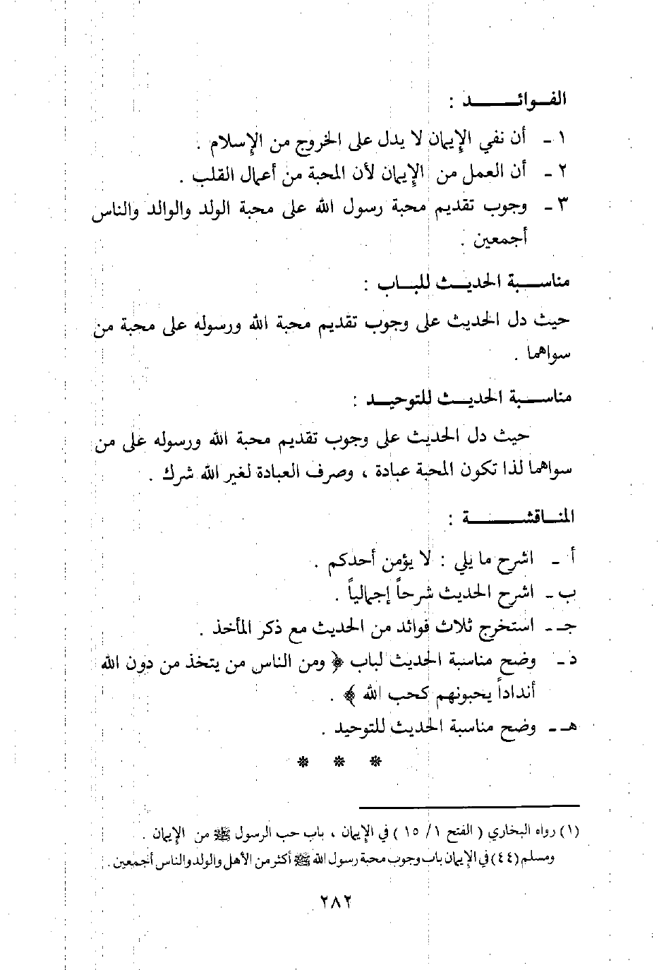 د. وضح مناسبة الحديث لباب: {وَمِنَ النَّاسِ مَنْ يَتَّخِذُ مِنْ دُونِ اللَّهِ أَنْدَاداً يُحِبُّونَهُمْ كَحُبِّ اللَّهِ} 1.