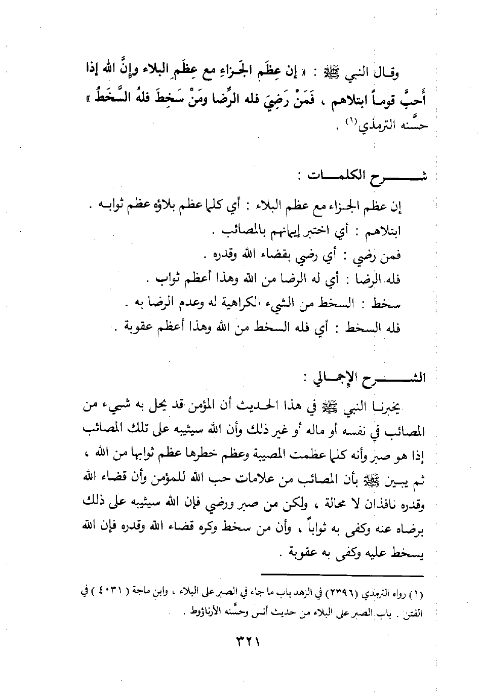 1 رواه الترمذي (2396) في الزهد، باب ما جاء في الصبر على البلاء. وابن ماجة (4031) في الفتن، باب الصبر على البلاء من حديث أنس. وحسَّنه الأرناؤوط.