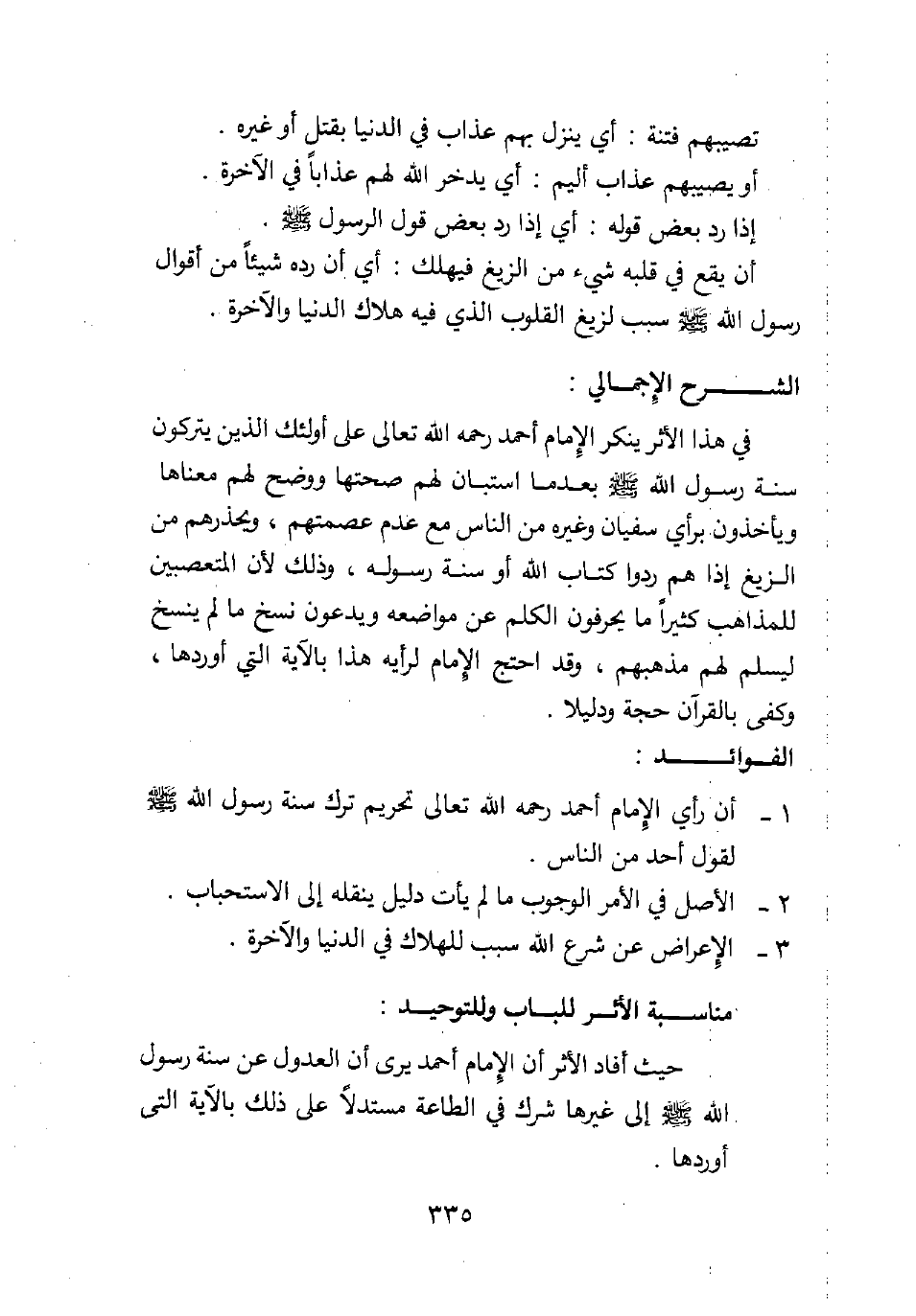 حيث أفاد الأثر أن الإمام أحمد يرى أن العدول عن سنة رسول الله صلى الله عليه وسلم إلى غيرها شرك في الطاعة، مستدلا على ذلك بالآية التي أوردها.