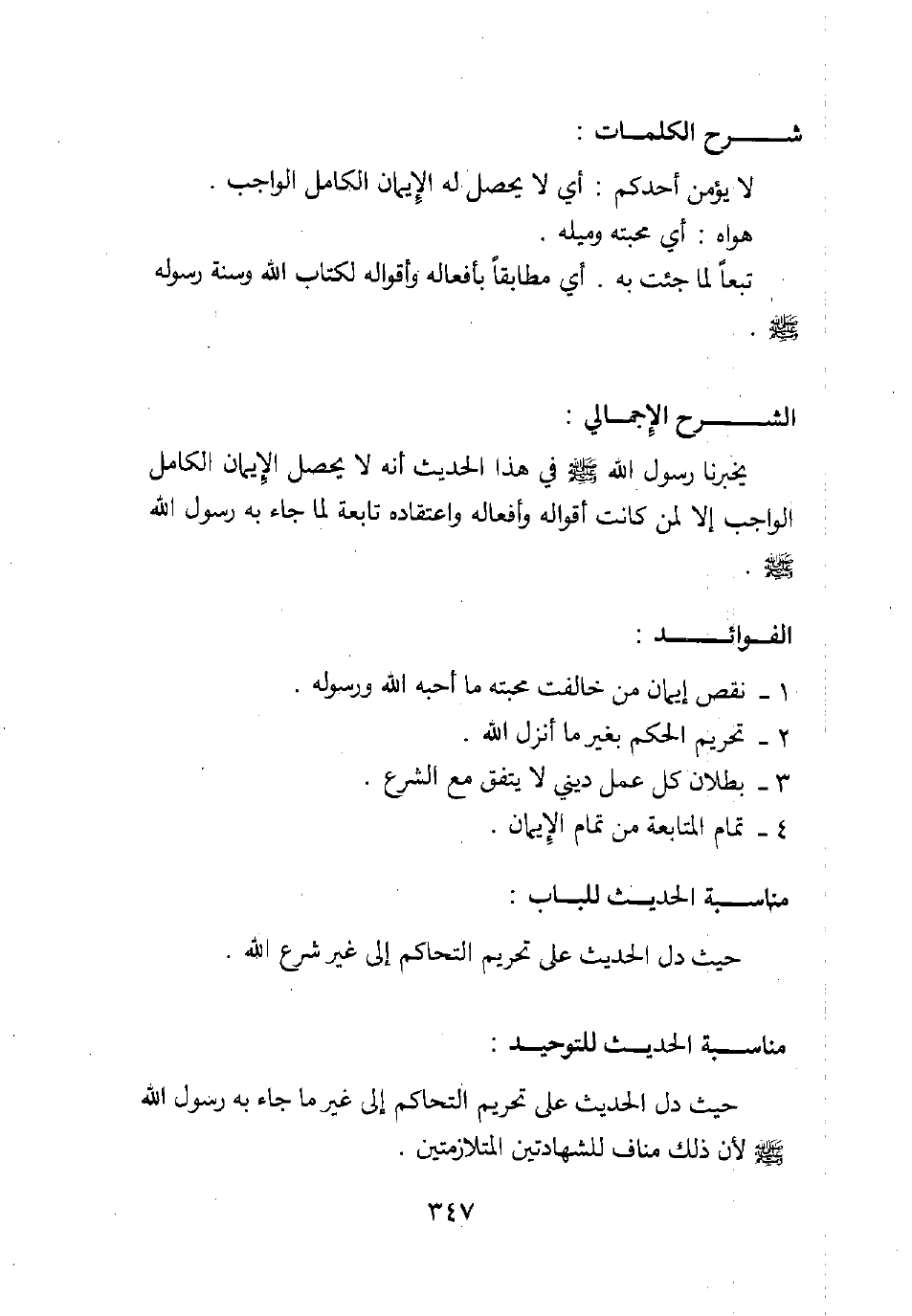 يخبرنا رسول الله صلى الله عليه وسلم في هذا الحديث أنه لا يحصل الإيمان الكامل الواجب إلا لمن كانت أقواله وأفعاله واعتقاده تابعة لما جاء به رسول الله صلى الله عليه وسلم.
