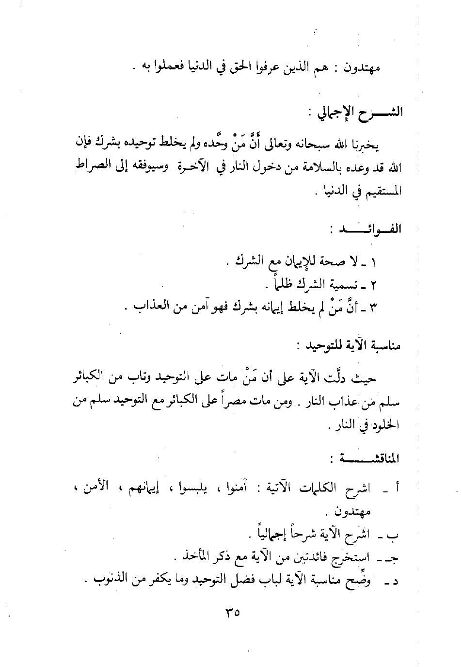 3. أن من لم يخلط إيمانه بشرك فهو آمن من العذاب.
