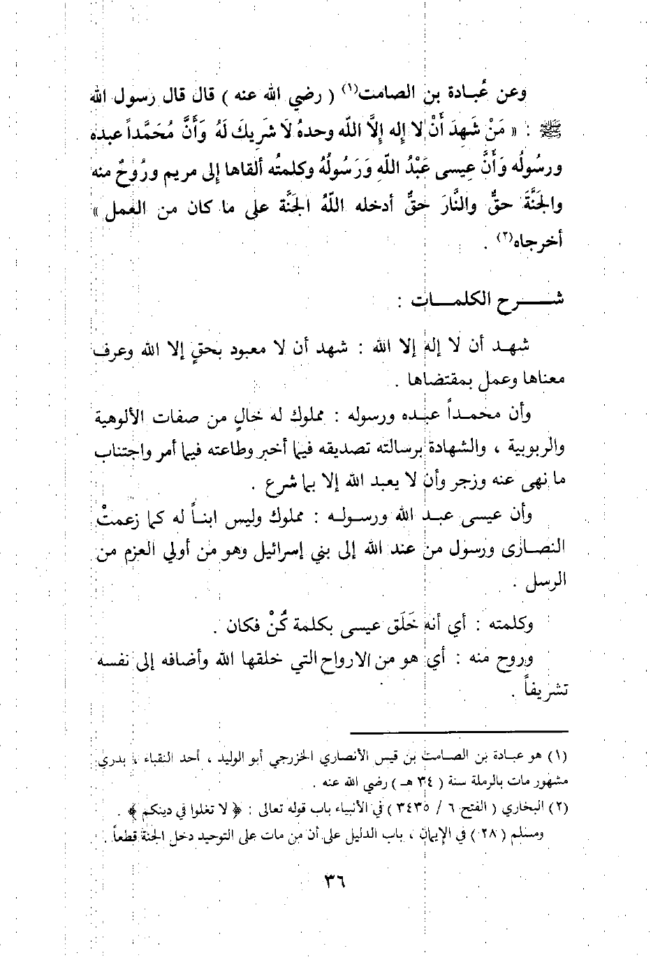 2 البخاري (الفتح 6/ 3435) في الأنبياء، باب قوله تعالى: (لا تغلوا في دينكم) . ومسلم (28) في الإيمان, باب الدليل على أن من مات على التوحيد دخل الجنة قطعا.