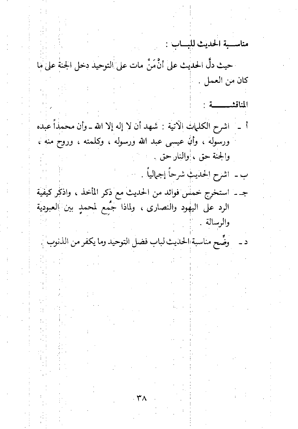 د. وضح مناسبة الحديث لباب فضل التوحيد وما يكفر من الذنوب.