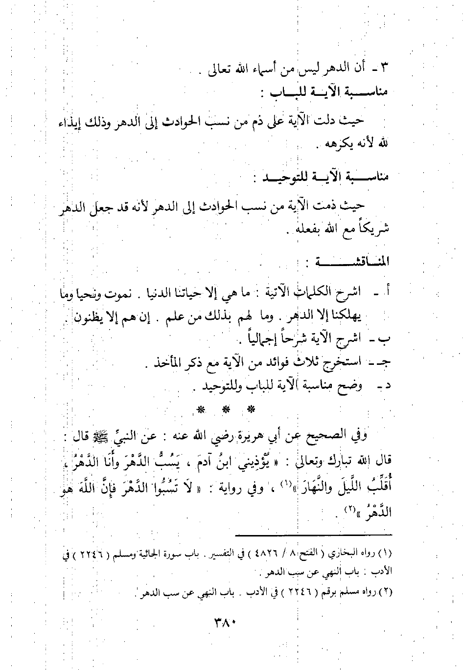 1 رواه البخاري (الفتح 8/ 4826) في التفسير، باب سورة الجاثية. ومسلم (2246) في الأدب، باب النهي عن سب الدهر.