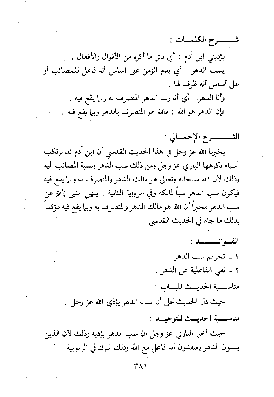 حيث أخبر الباري عزوجل أن سب الدهر يؤذيه، وذلك لأن الذين يسبون الدهر يعتقدون أنه فاعل مع الله، وذلك شرك في الربوبية.
