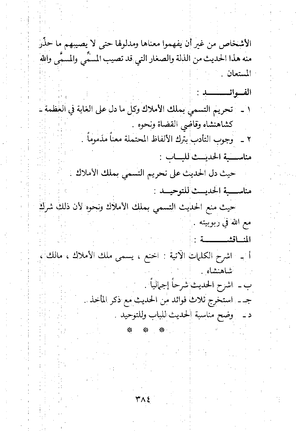 1. تحريم التسمي بملك الأملاك وكل ما دل على الغاية في العظمة، كشاهنشاه وقاضي القضاة ونحوه.