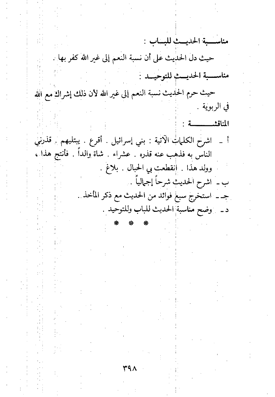 د. وضح مناسبة الحديث للباب وللتوحيد.