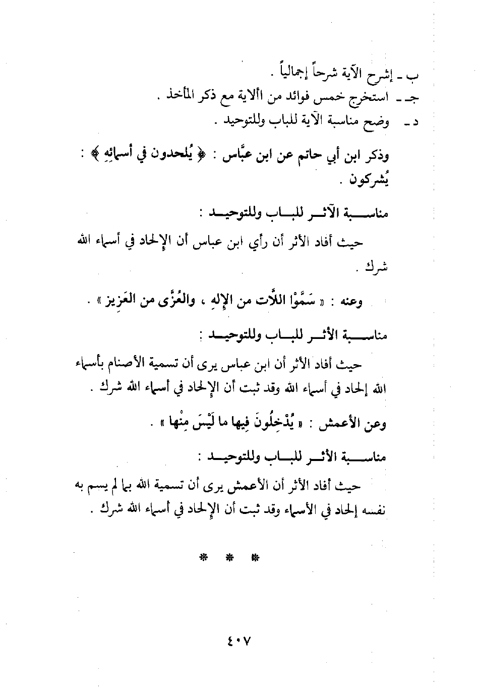حيث أفاد الأثر أن ابن عباس يرى أن تسمية الأصنام بأسماء الله إلحاد في أسماء الله، وقد ثبت أن الإلحاد في أسماء الله شرك.