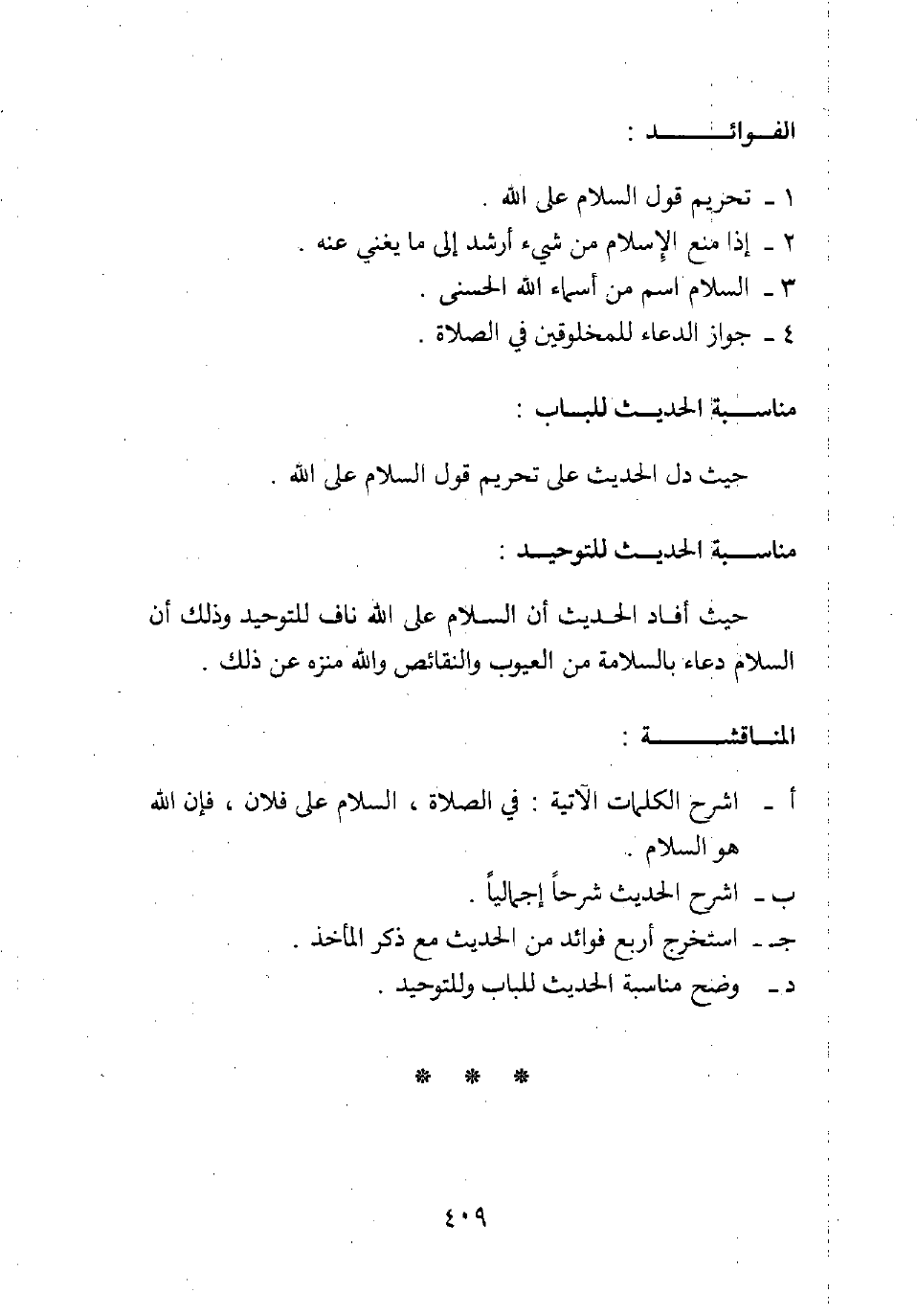 أ. اشرح الكلمات الآتية: في الصلاة، السلام على فلان، فإن الله هو السلام.