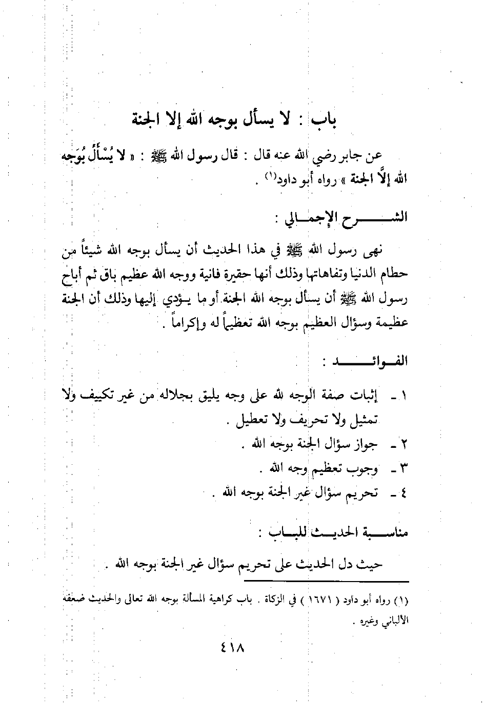 2 رواه أبو داود (1671) في الزكاة، باب كراهية المسألة بوجه الله تعالى. والحديث ضعفه الألباني وغيره.