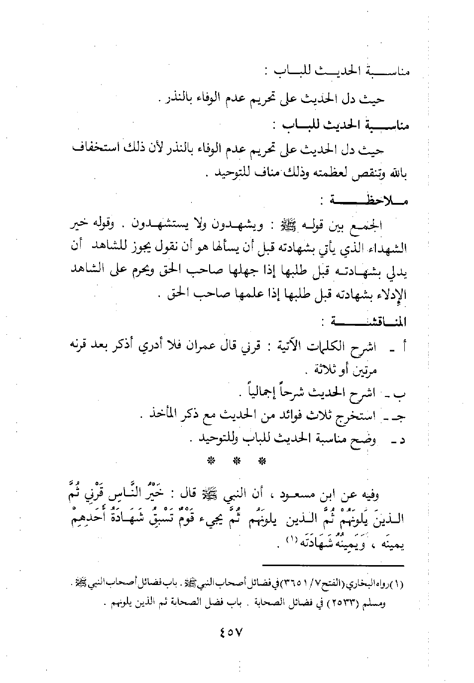 1 رواه البخاري (الفتح 7/ 3651) في فضائل أصحاب النبي -صلى الله عليه وسلم-، باب فضائل أصحاب النبي -صلى الله عليه وسلم-. ومسلم (2533) في فضائل الصحابة، باب فضل الصحابة ثم الذين يلونهم.