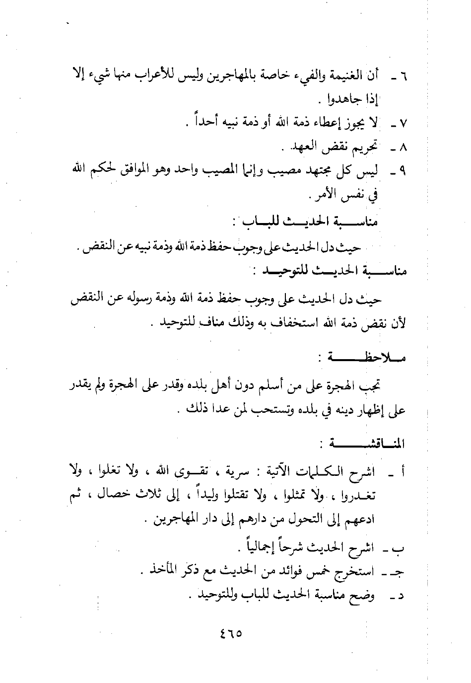 حيث دل الحديث على وجوب حفظ ذمة الله وذمة رسوله عن النقض؛ لأن نقض ذمة الله استخفاف به وذلك مناف للتوحيد.