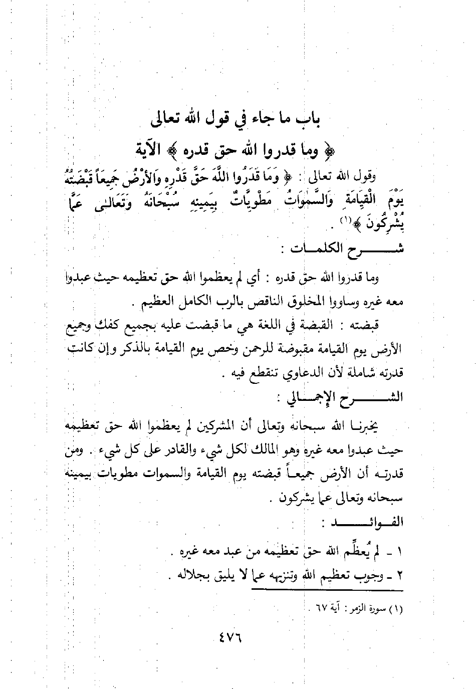 باب ما جاء في قول الله تعالى: {وَمَا قَدَرُوا اللَّهَ حَقَّ قَدْرِهِ} الآية