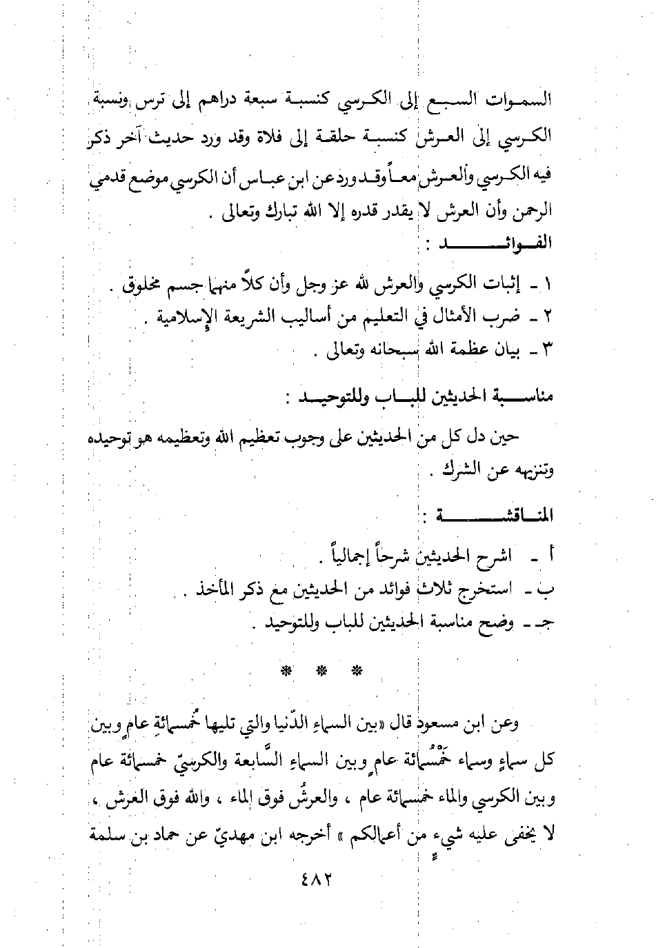 1. إثبات الكرسي والعرش لله عزوجل، وأن كلا منهما جسم مخلوق.