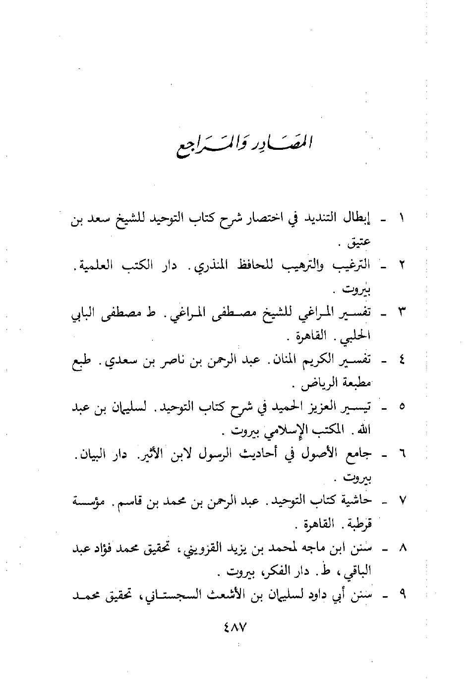 5- تيسير العزيز الحميد في شرح كتاب التوحيد. لسليمان بن عبد الله. المكتب الإسلامي بيروت.