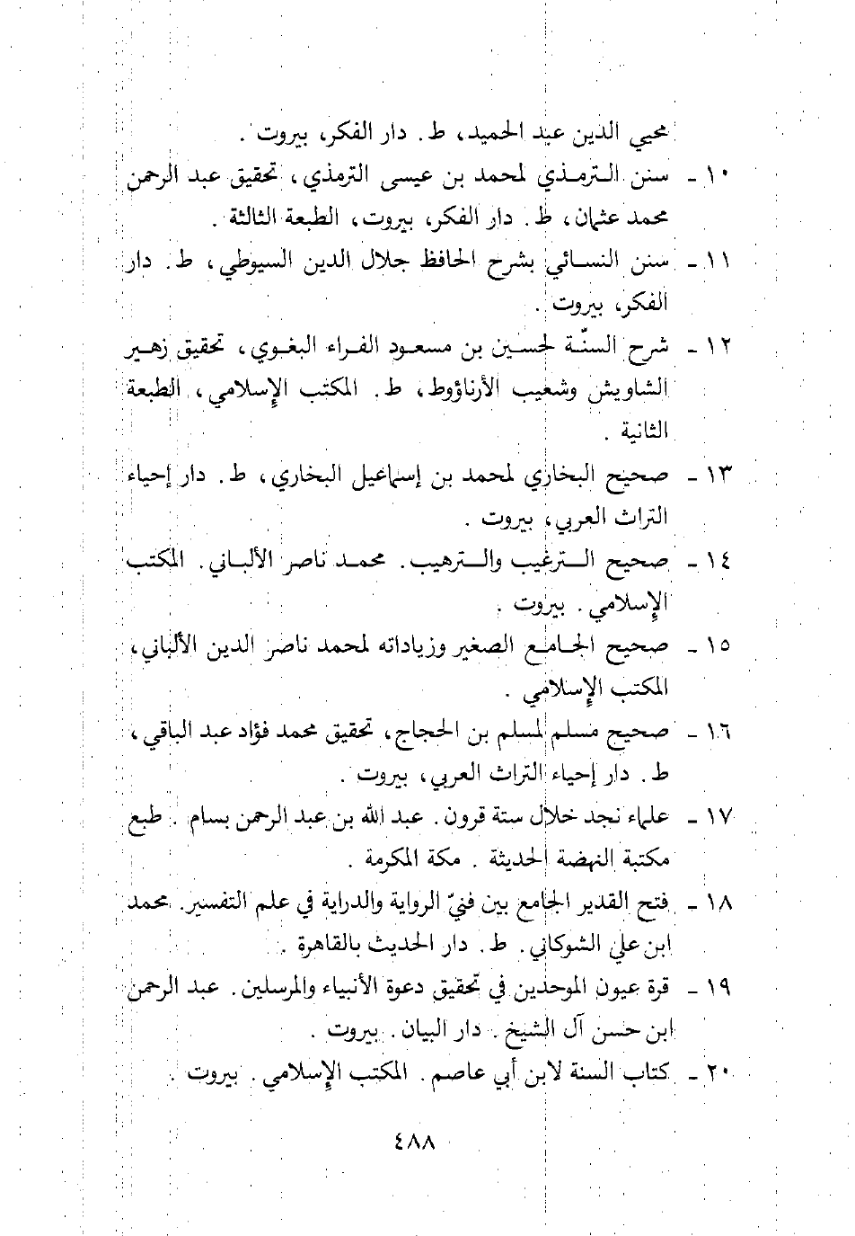 20- كتاب السنة لابن أبي عاصم. المكتب الإسلامي. بيروت.
