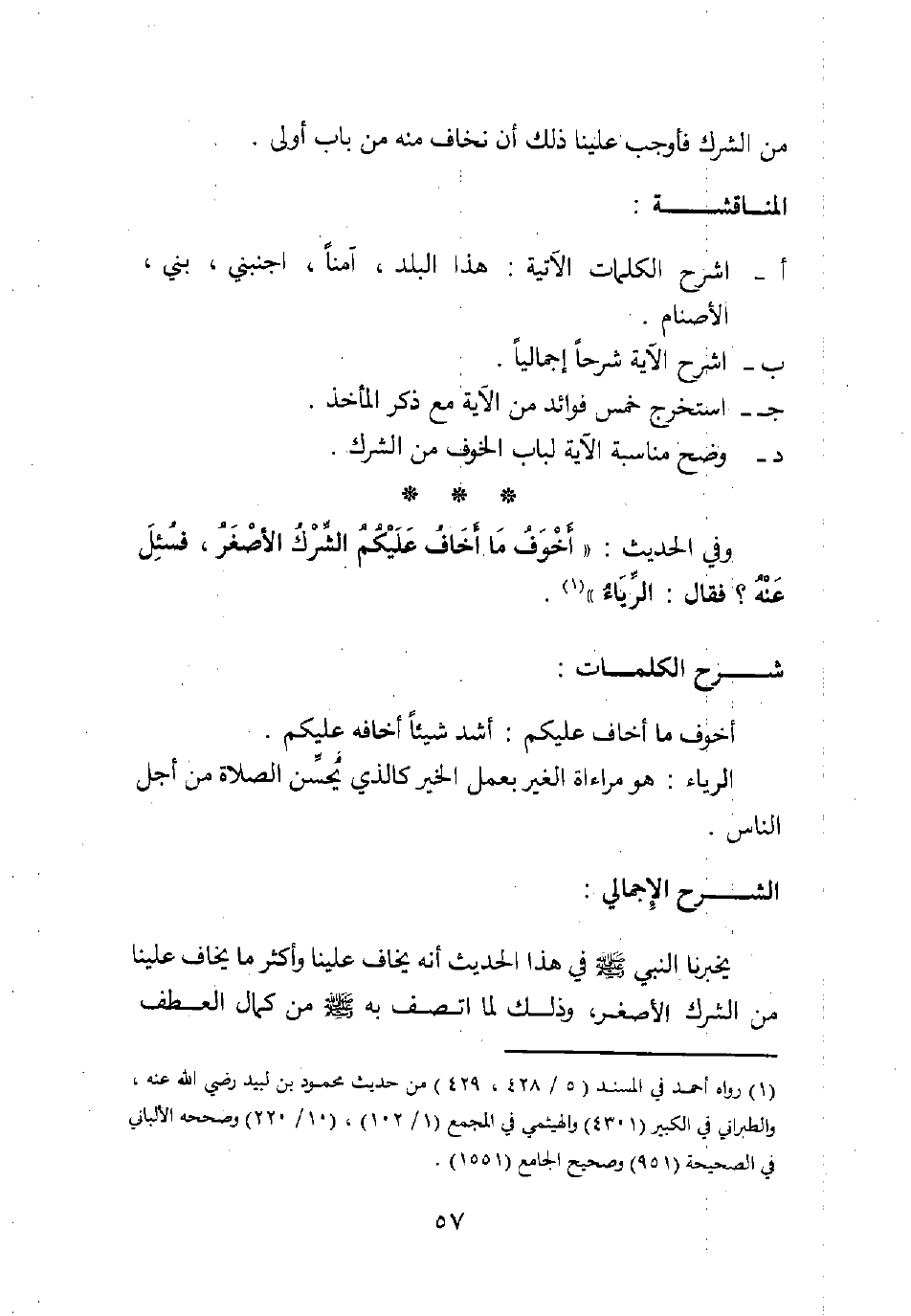 يخبرنا النبي صلى الله عليه وسلم في هذا الحديث أنه يخاف علينا، وأكثر ما يخاف علينا من الشرك الأصغر، وذلك لما اتصف به صلى الله عليه وسلم من كمال العطف