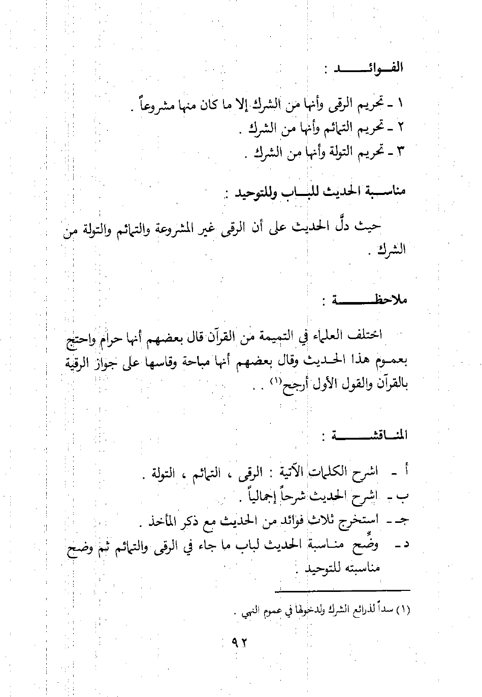1. تحريم الرقى وأنها من الشرك إلا ما كان منها مشروعا.