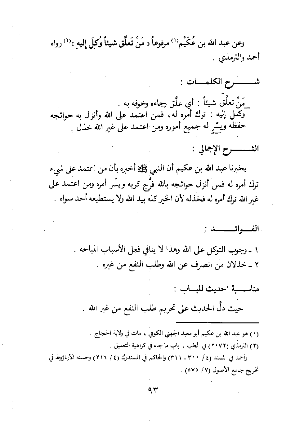 وعن عبد الله بن عكيم1 مرفوعا: "من تعلق شيئا وكل إليه"2. رواه أحمد والترمذي.