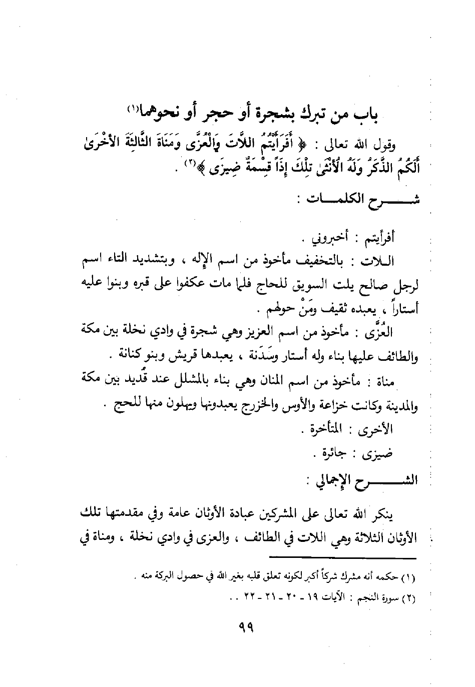 وقول الله تعالى: {أَفَرَأَيْتُمُ اللاَّتَ وَالْعُزَّى وَمَنَاةَ الثَّالِثَةَ الأُخْرَى أَلَكُمُ الذَّكَرُ وَلَهُ الأُنْثَى تِلْكَ إِذاً قِسْمَةٌ ضِيزَى} 2.