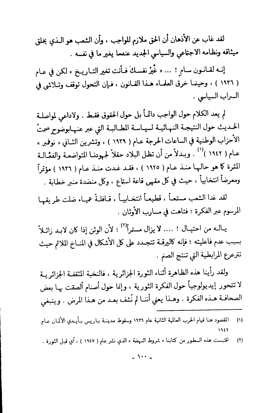 (¬2) اقتبست هذه السطور من كتابنا "شروط النهضة" الذي نشر عام (1947)، أي قبل الثورة.