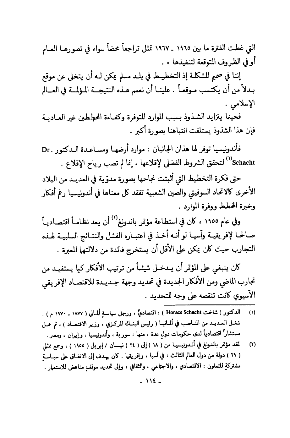 فأندونيسيا توفر لها هذان الجانبان: موارد أرضها ومساعدة الدكتور Dr. Schacht (¬1) لتحقيق الشروط الفضلى لإقلاعها، إنما لم تصب رياح الإقلاع.