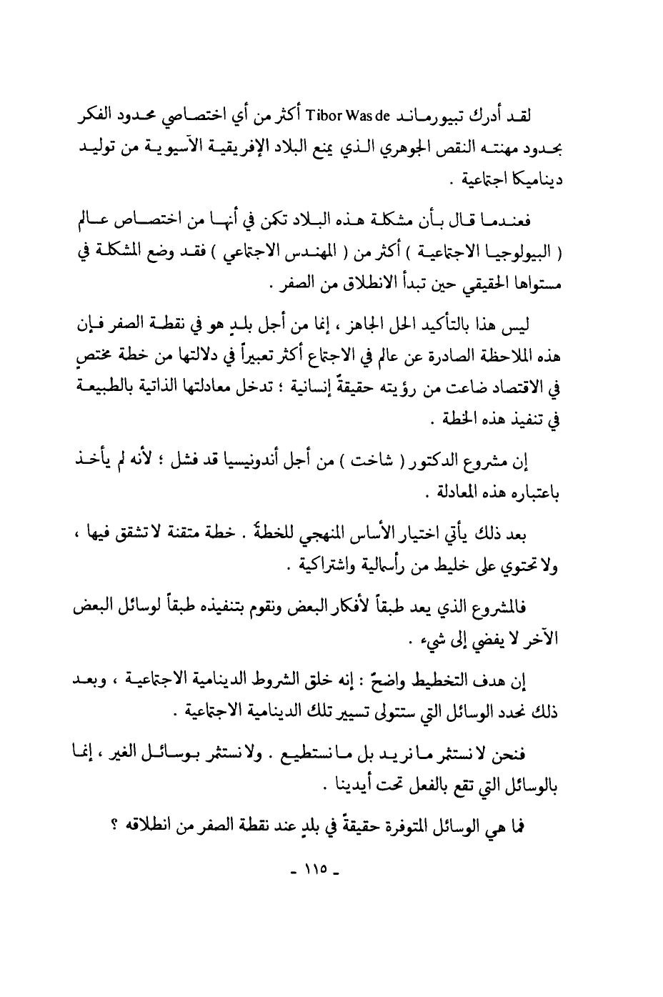 إن مشروع الدكتور (شاخت) من أجل أندونيسيا قد فشل؛ لأنه لم يأخذ باعتباره هذه المعادلة.