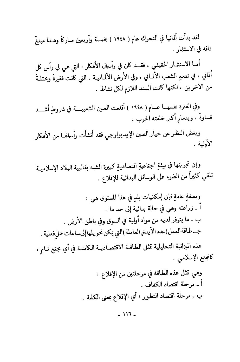 ب - مرحلة اقتصاد التطور؛ أي الإقلاع بمعنى الكلمة.