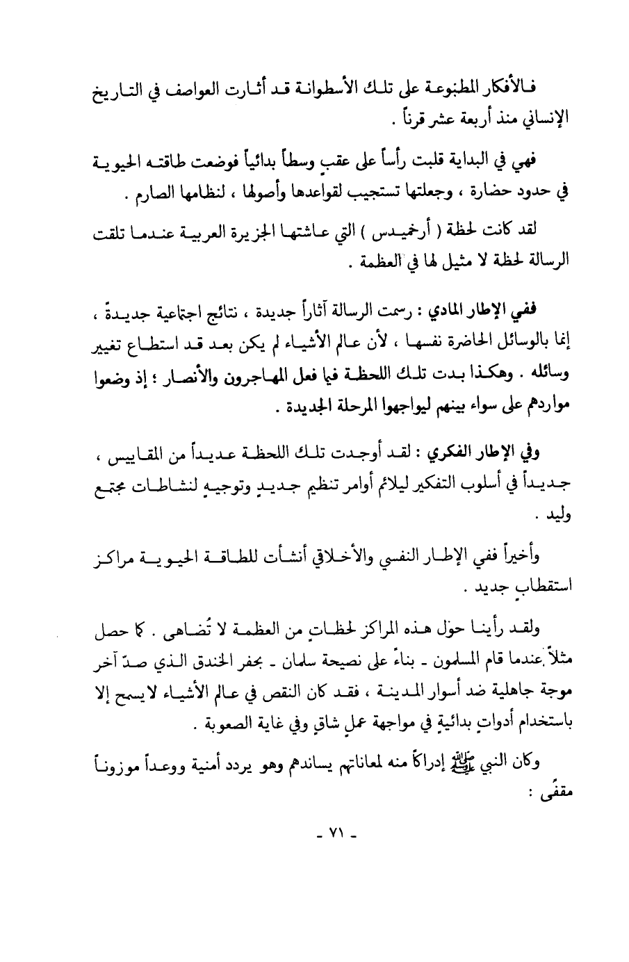 لقد كنت لحظة (أرخميدس) التي عاشتها الجزيرة العربية عندما تلقت الرسالة لحظة لا مثيل لها في العظمة.