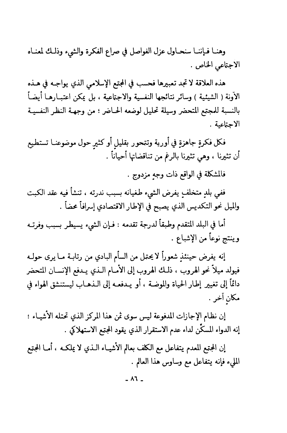 هذه العلاقة لا تجد تعبيرها فحسب في المجتمع الإسلامي الذي يواجه في هذه الآونة (الشيئية) وسائر نتائجها النفسية والاجتماعية، بل يمكن اعتبارها أيضاً بالنسبة للمجتمع المتحضر وسيلة تحليل لوضعه الحاضر؛ من وجهة النظر النفسية الاجتماعية.