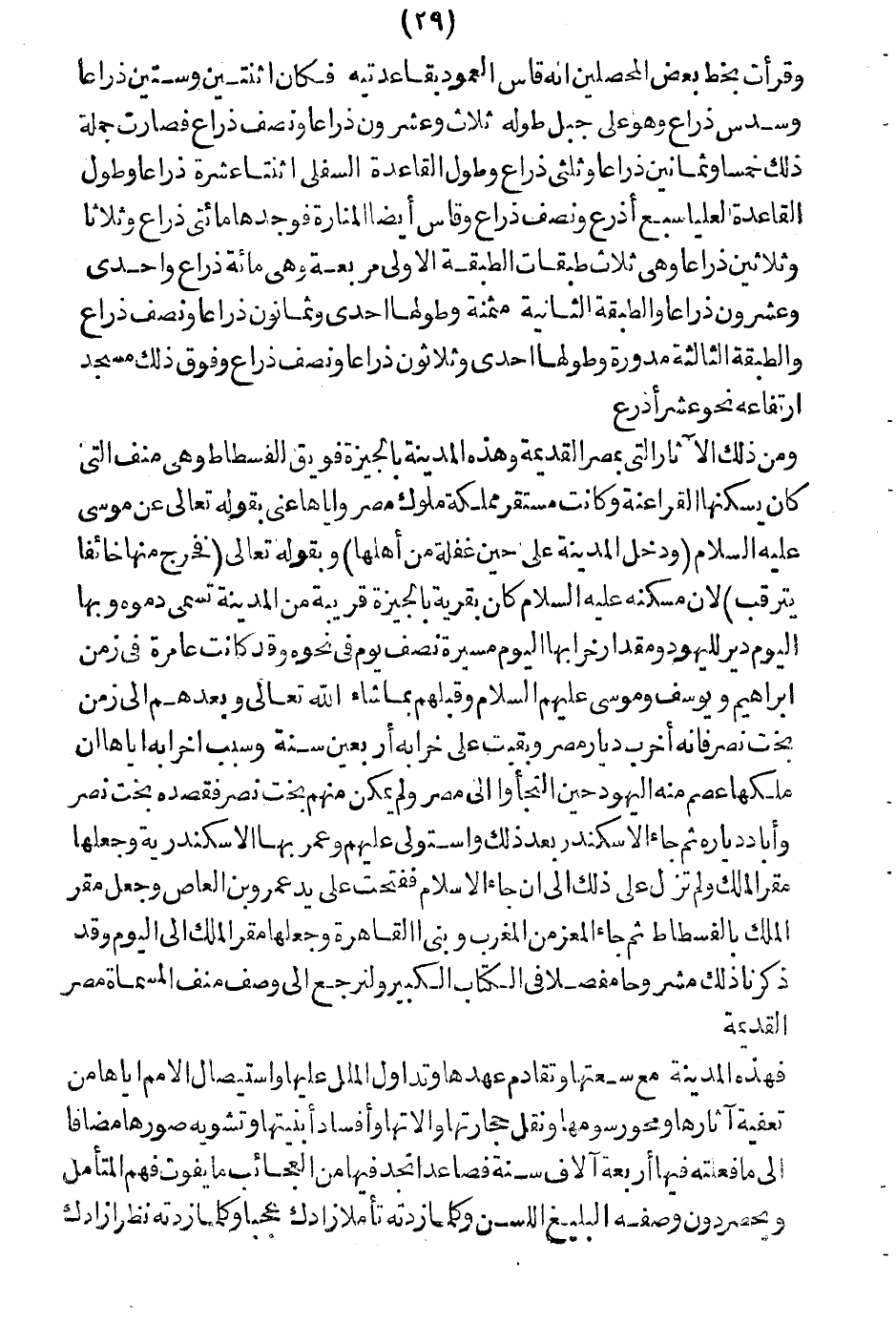 فهذه المدينة مع سعتها وتقادُمِ عهدها وتداوُل الملل عليها واستئصال الأمم إيّاها، مِن تعفيةِ آثارها ومحو رسومها ونقل حجارتها وآلاتها، وإفساد أبنيتها وتشويه صورها، مُضافاً إلى ما فعلته فيها أربعةُ آلاف سنة فصاعداً تجد فيها من العجائب ما يفوتُ فهم الفَطِن المتأمِّل، ويحسر دون وصفه البليغ اللَّسن، وكلما زدته تأملا، زادك عجباً، وكلما زدته نظراً زادك