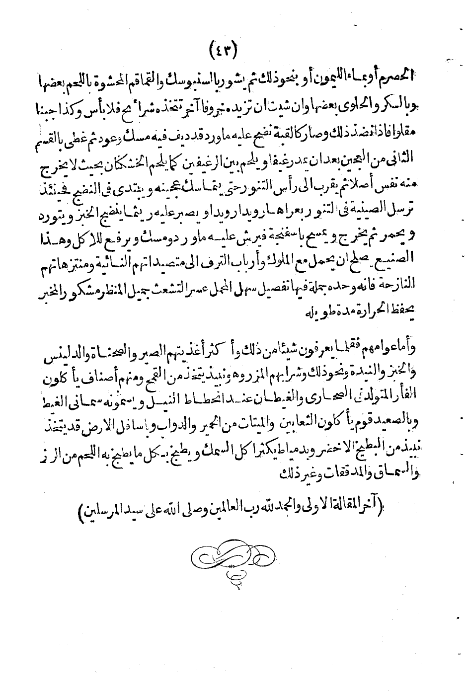 آخر المقالة الأولى والحمد لله رب العالمين وصلى الله على سيد المرسلين.