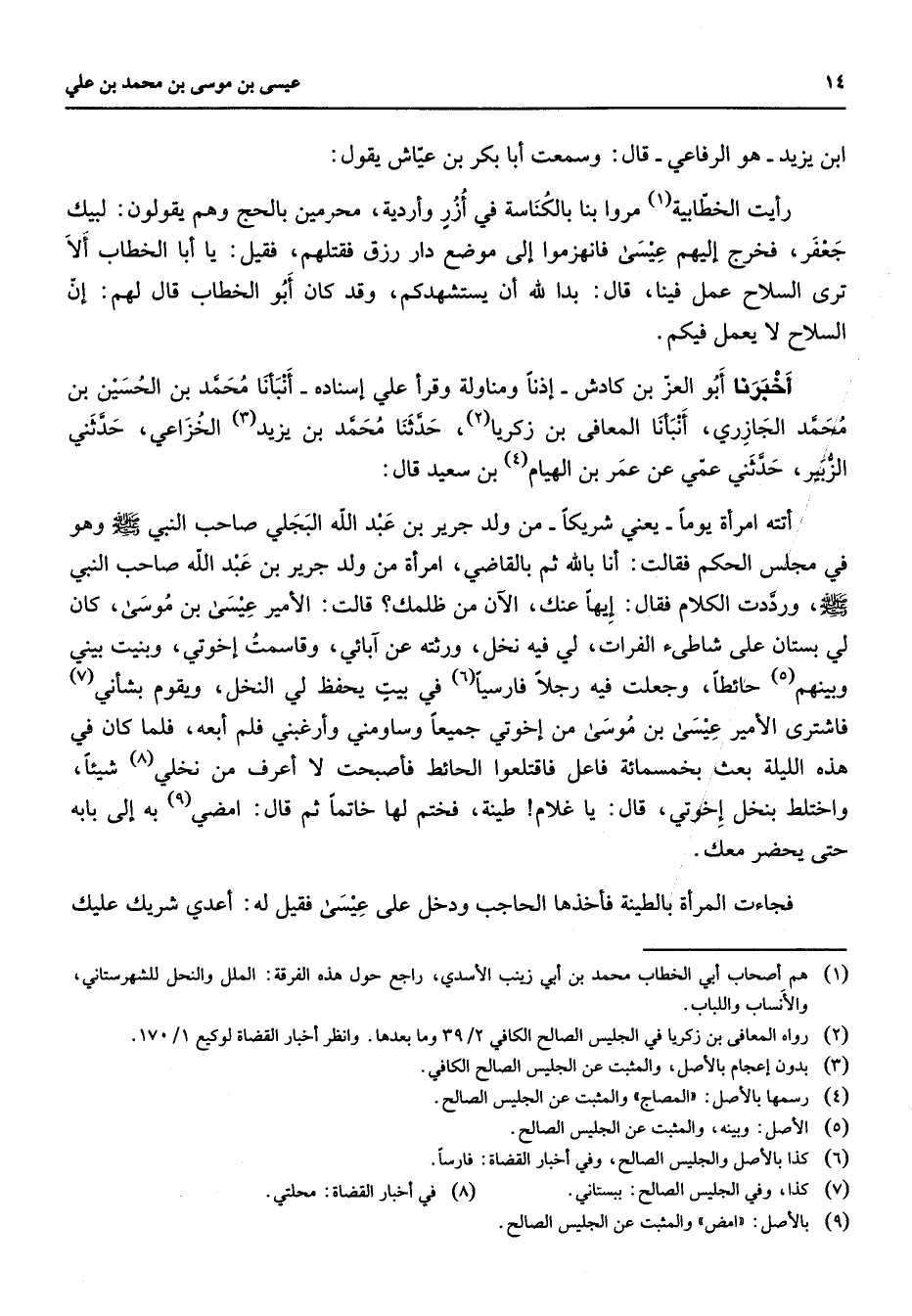 (2) رواه المعافى بن زكريا في الجليس الصالح الكافي 2 / 39 وما بعدها