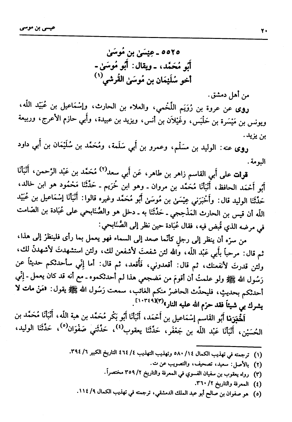 (1) ترجمته في تهذيب الكمال 14 / 580 وتهذيب التهذيب 4 / 464 التاريخ الكبير 6 / 394