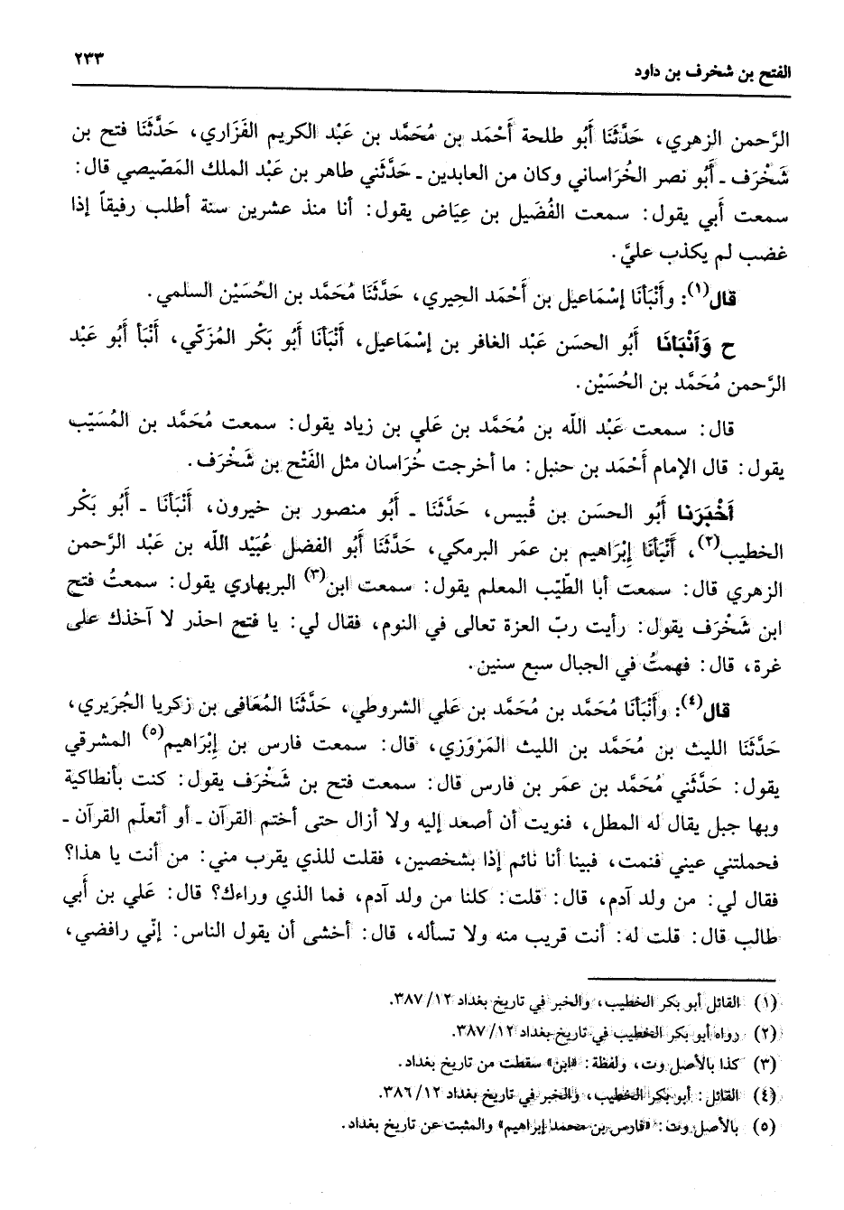 (4) القائل: أبو بكر الخطيب والخبر في تاريخ بغداد 12 / 386