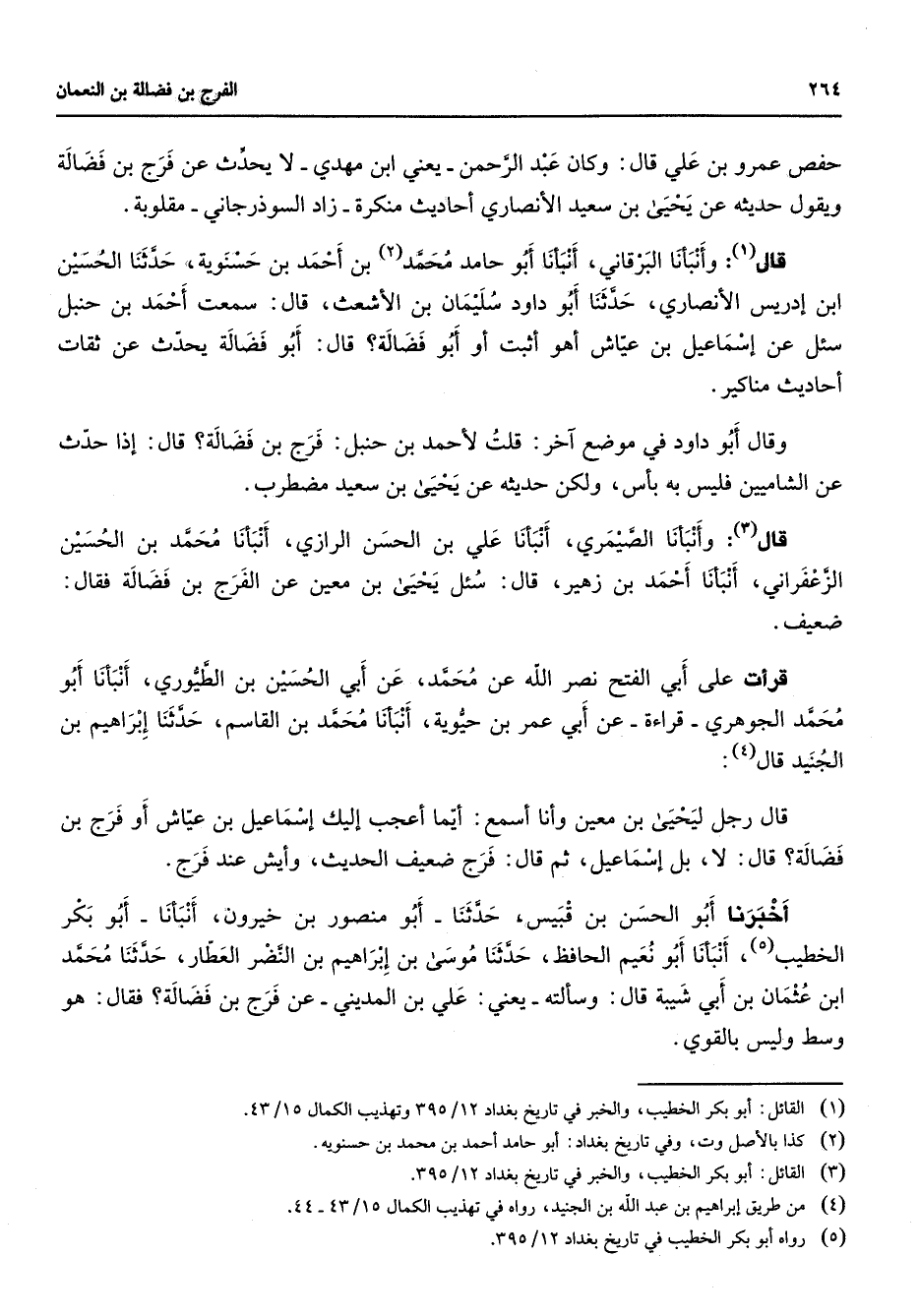 (3) القائل: أبو بكر الخطيب والخبر في تاريخ بغداد 12 / 395