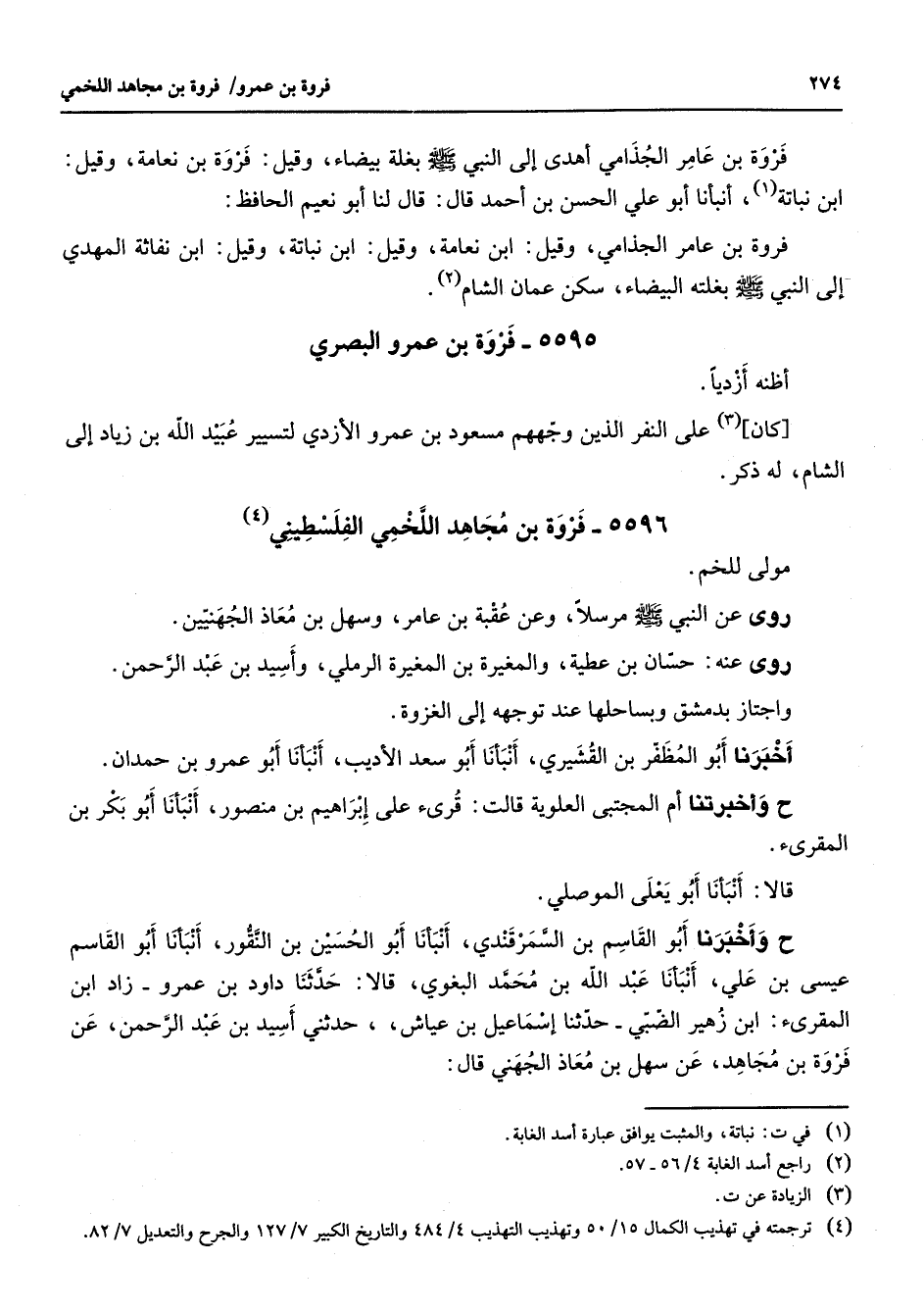 (4) ترجمته في تهذيب الكمال 15 / 50 وتهذيب 4 / 484 والتاريخ الكبير 7 / 127 والجرح والتعديل 7 / 82